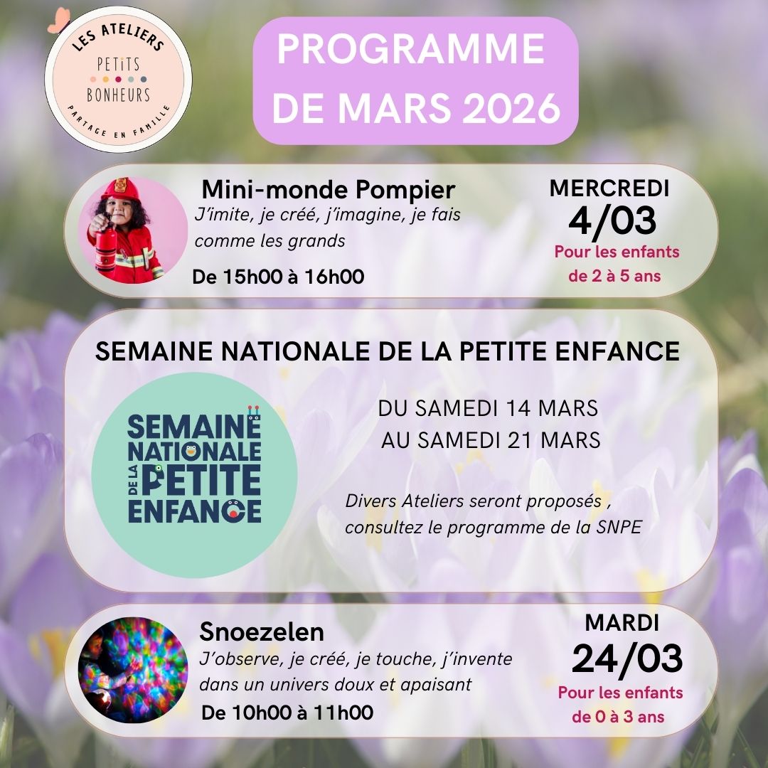 Ces ateliers, ouverts à tous, sont animés par des professionnels de la petite enfance pour vous aider