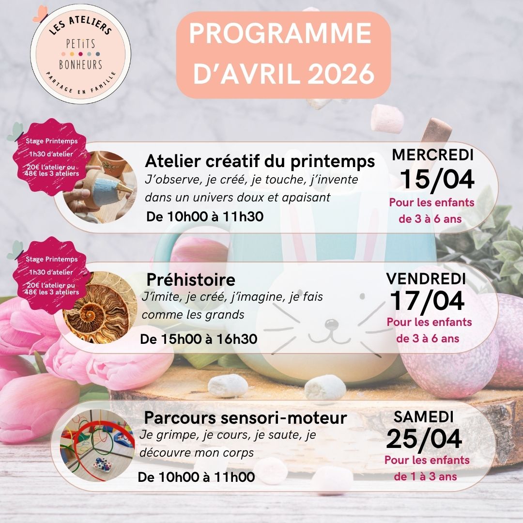 Ces Ateliers Parent-Enfant ouverts à tous, sont conçus pour vous offrir un moment privilégié avec votre enfant. Vous pourrez partager ensemble des activités sensorielles ou motrices tout en créant de merveilleux souvenirs.